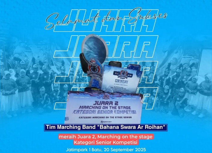 Bahana Swara Ar Roihan kembali berlaga. Kali ini Bahana Swara unjuk aksi dalam Marching Band Competition 2025. Kejuaraan yang dihelat di Jawa Timur Park 1 pada Hari Sabtu (20/9). Pada kejuaraan kali ini Bahana Swara meraih Juara 2 Kategori Marching On The Stage Senior.