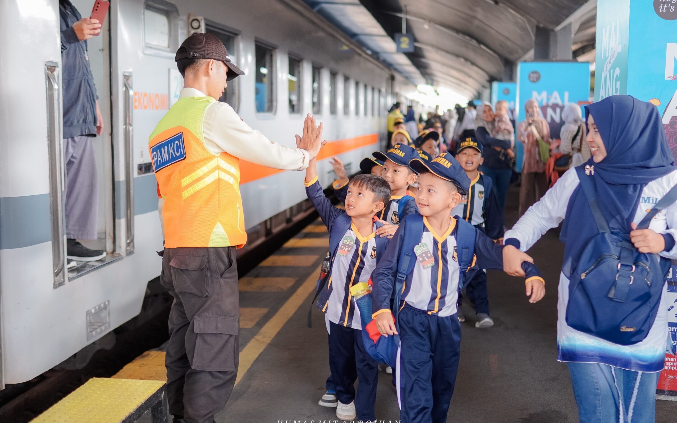 Commuter Line Penataran 425 tiba di Stasiun Malang Kota Baru pada pukul 07.26. Setibanya di Stasiun Malang Kota baru, siswa belajar cara untuk keluar dari stasiun sesuai dengan papan penunjuk arah yang ada di stasiun tersebut. Tidak berhenti sampai disini, selanjutnya siswa belajar untuk menggunakan transportasi umum Angkutan Kota (Angkot) menuju taman Rampal untuk kegiatan Fun Games.