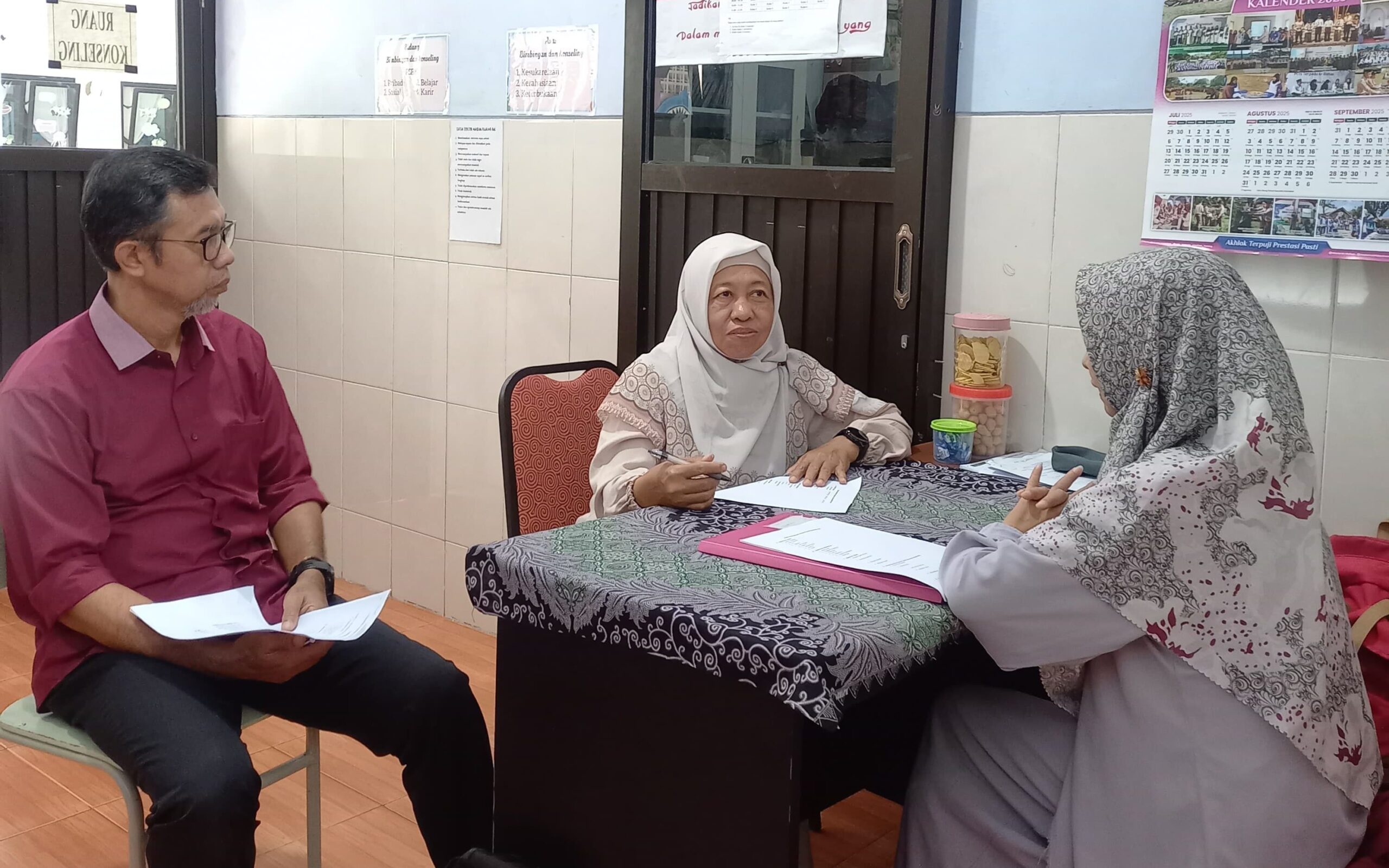 Pukul 10.30, acara dipusatkan di ruang pertemuan untuk paparan profil madrasah oleh Kepala Madrasah, yang dilanjutkan dengan tanya jawab. Beberapa pertanyaan saat tanya jawab diantara tentang rekrutmen guru, gaji, proses pembelajaran siswa ABK, dan lain sebagainya.