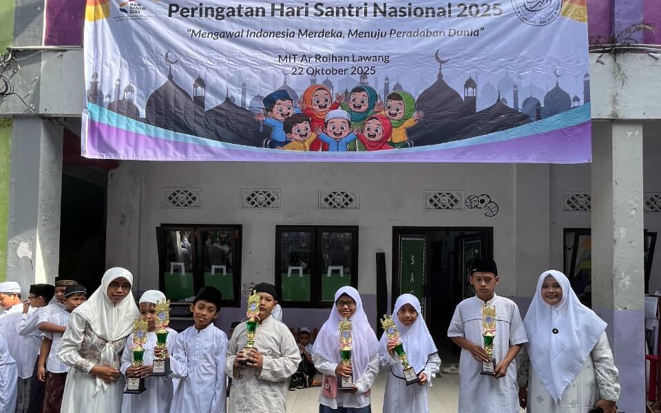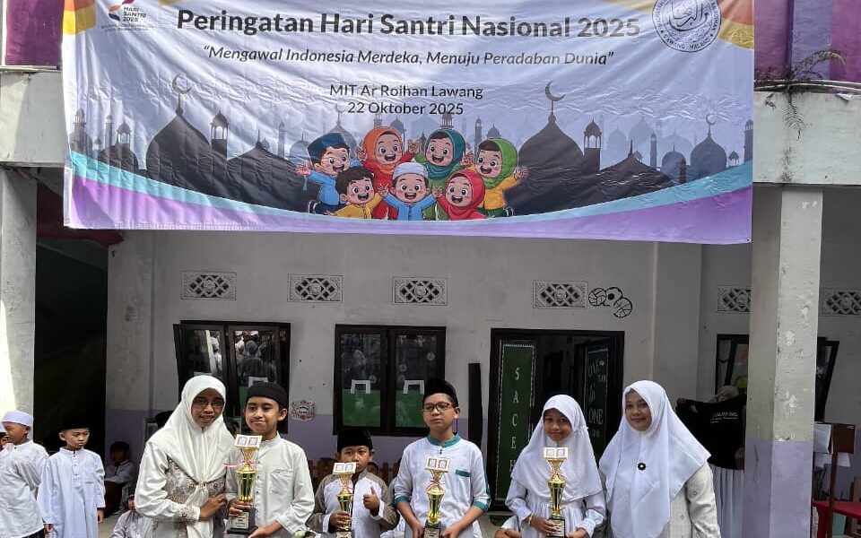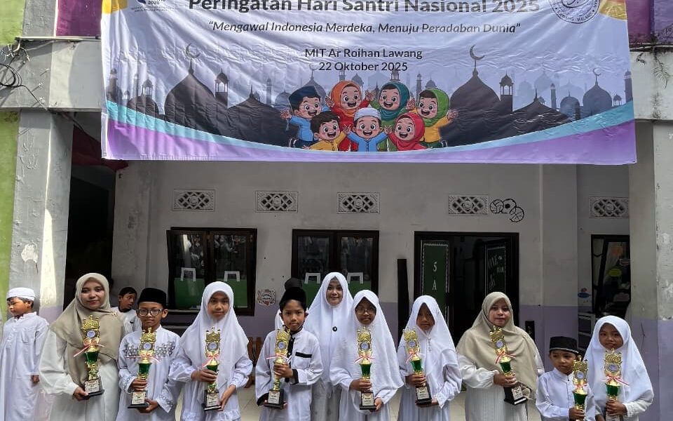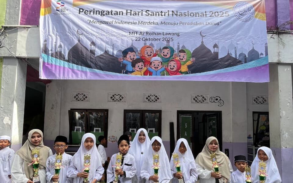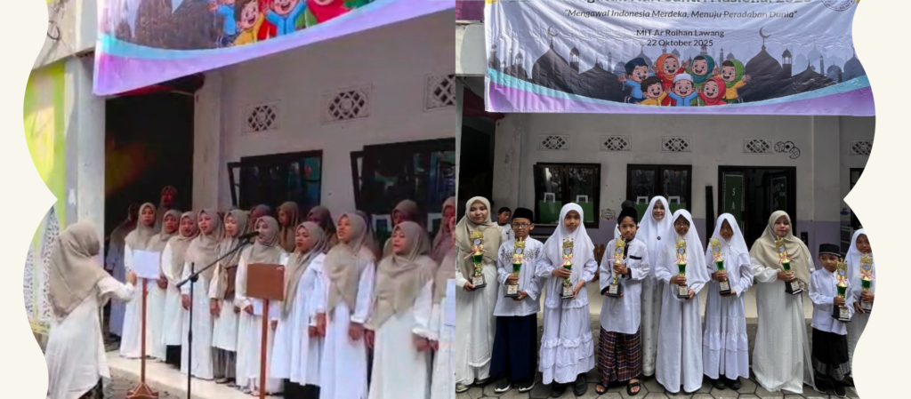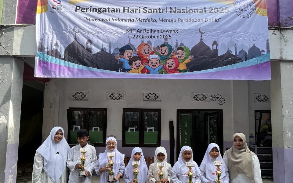 Alunan Sholawat Asygil mengiringi kemeriahan upacara peringatan Hari Santri di MIT Ar Roihan Lawang. Upacara yang diikuti oleh seluruh siswa kelas 1-6 beserta guru ini, diselenggarakan pada Hari Rabu (22/10). Hari santri jatuh pada tanggal 22 Oktober setiap tahunnya, diperingati sebagai bentuk penghormatan terhadap momen penting, untuk menghargai peran dan kontribusi santri dalam pembangunan bangsa. Santri, para pelajar di pesantren, memiliki peran yang sangat vital dalam menjaga dan memperkokoh nilai-nilai keagamaan, kebudayaan, dan sosial di masyarakat.